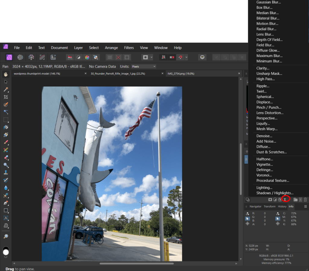 As you can see from Affinity’s filters, there are a few Adobe filters missing here, and if the missing filters are among your favorites, you’ll find this annoying.
