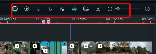 You also have controls here (below) for rendering, adding markers, recording voiceovers, mixing audio, preview mode, setting zoom to fit, and using Filmora copilot.