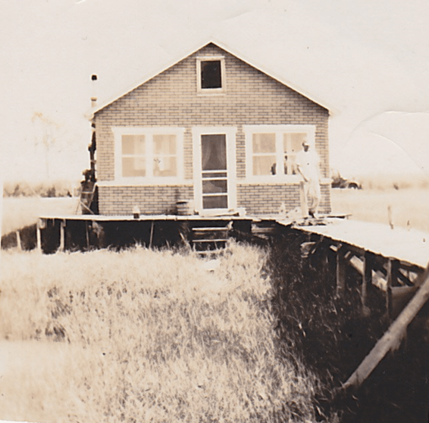 Decades later in the 1970s, when my family returned to New Jersey after several years in Maine, Sis and Reds were now living in a mobile home because their original house had been destroyed by a storm. This new home sat on fixed pilings. These pilings extended far enough into the bay so that two-thirds of their home was suspended above the high tide mark. You had to walk a boardwalk—or ‘gangplank’ as we liked to call it—to get to their front door, because at high tide, the bay was under the boardwalk.